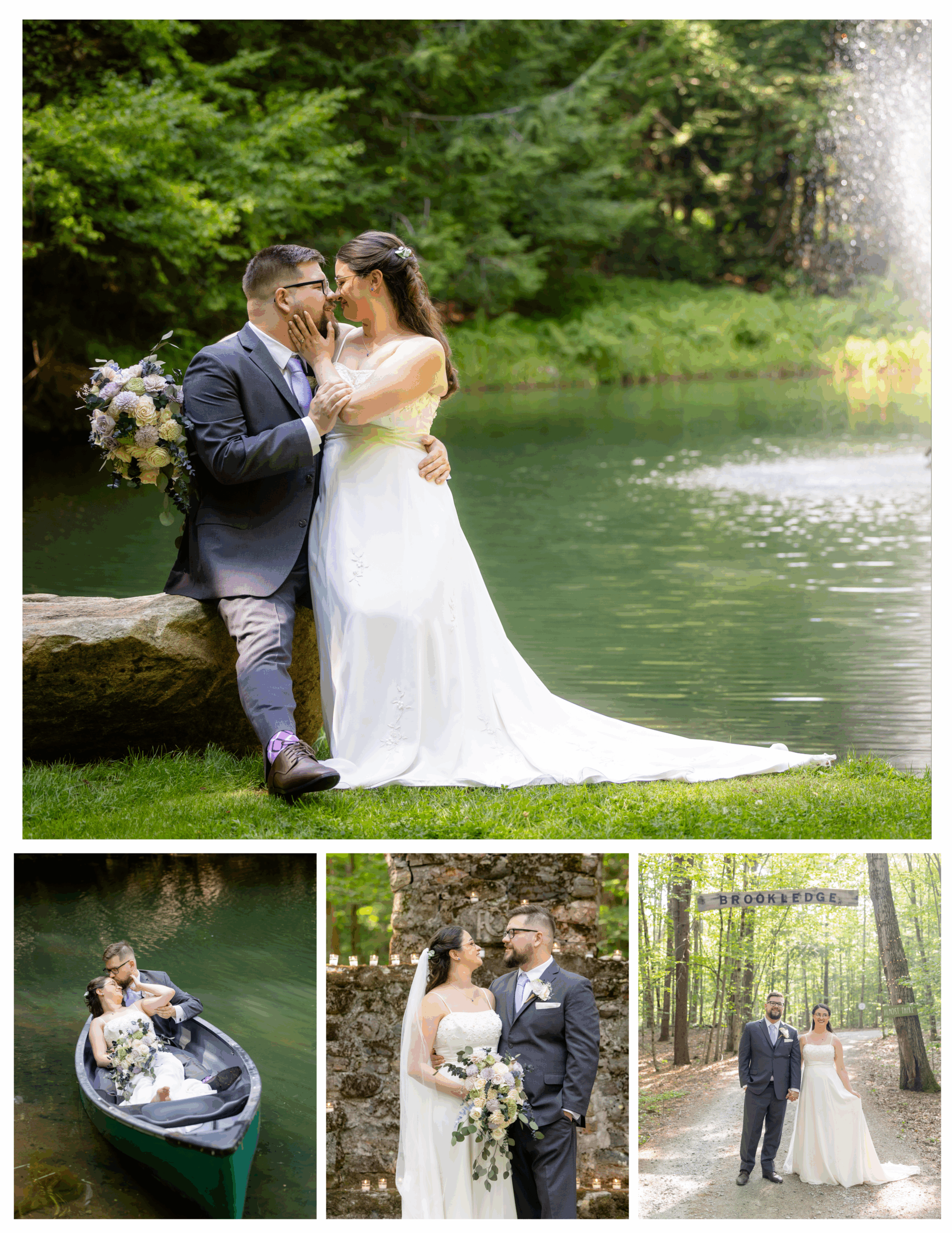 A romantic, rustic wedding at Brookledge in Saratoga County featuring a woodland ceremony, canoe portraits, and cozy s’mores under the stars — captured by Upstate New York wedding photographer, Nicole April Photography